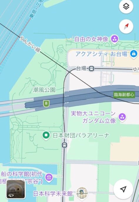 ますば、お台場の手前、ゲートウェイブリッジの近くの新しい公園