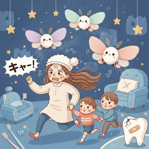 実は、その夜は悪夢を見まして、夢には、大きな蛾が出てきて、幼い頃の長男と長男の幼馴染の子を必死に守りながら逃げ回る私。