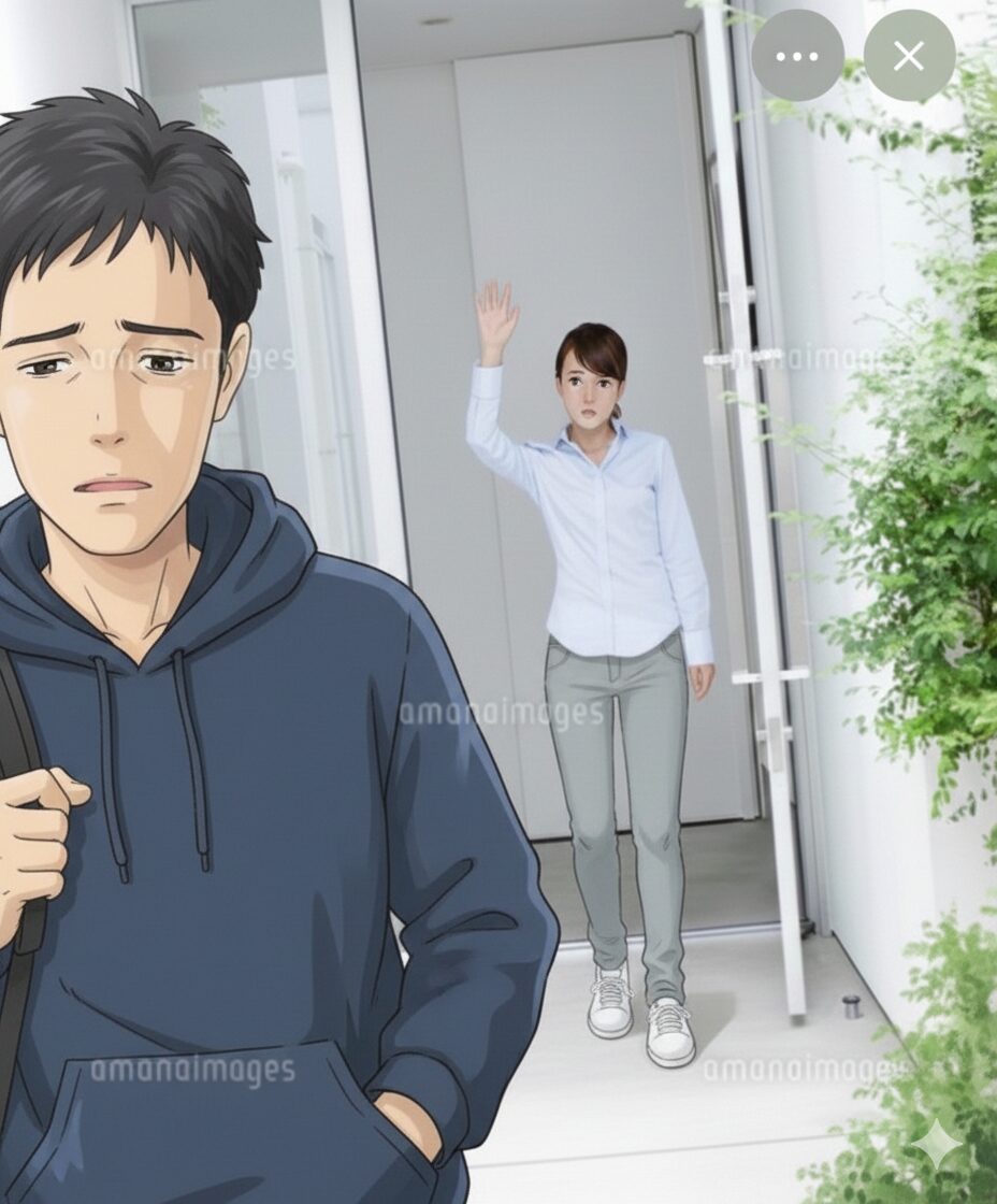 彼は玄関で、こっちを見て「行ってきます」と言ったけれど、胸を張って、とは対照的に、自信のなさそうな、丸まった背中で行きました🚶