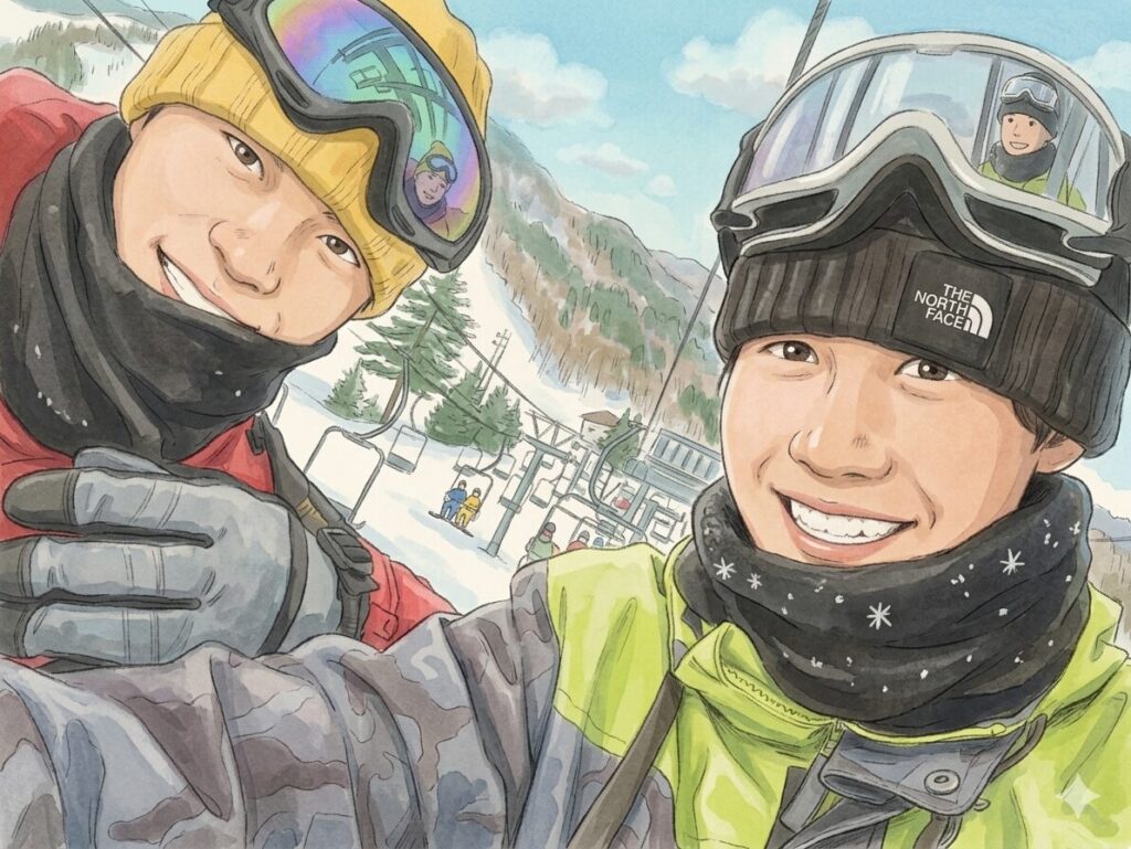 「念願の卒業旅行」として、人生初のスノボをしに、2泊3日で長野へ旅立っていきました。